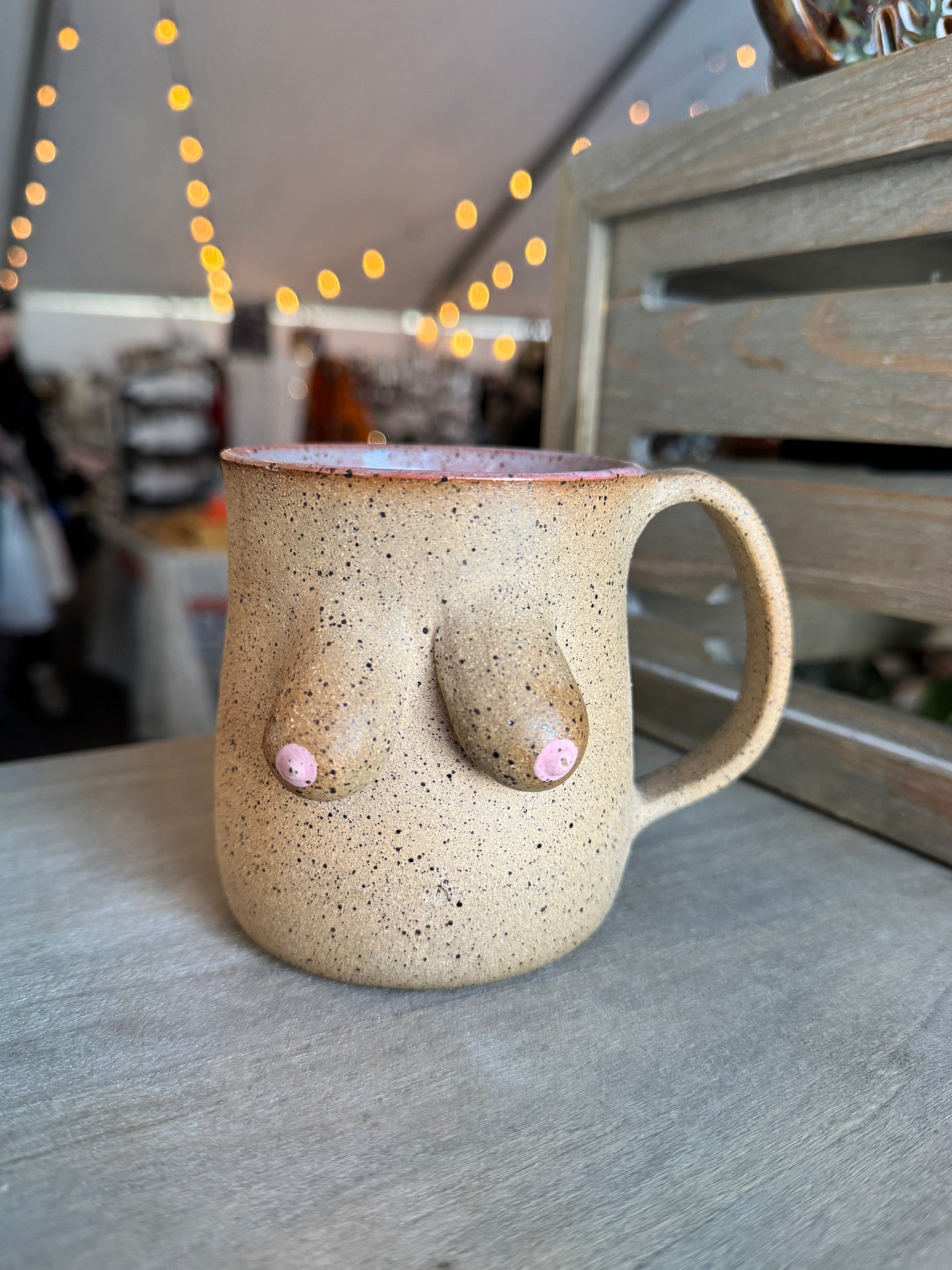 Boob Mug! Mugs will hold 12+ oz. Hand Thrown with porcelain clay, glazed, and fired with food safe glaze. Mugs are microwave and dishwasher safe!